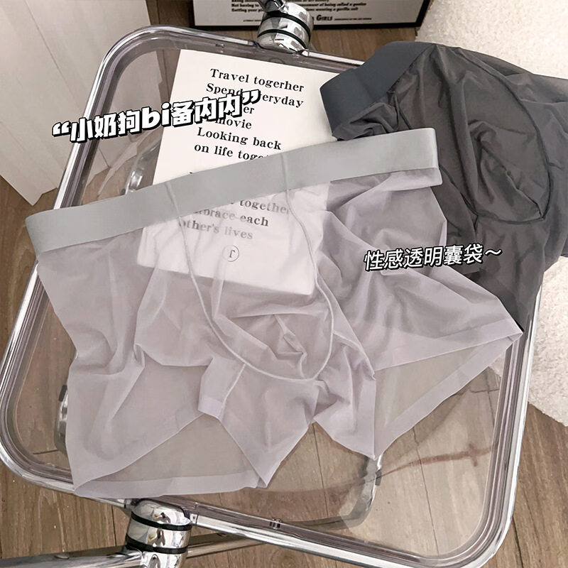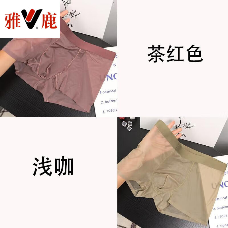 雅鹿男士透明内裤全透超薄冰絲面膜内裤无痕一片式透明裸感平角裤组合 20d面膜冰丝-浅咖+茶红2条 3XL 建议150180斤