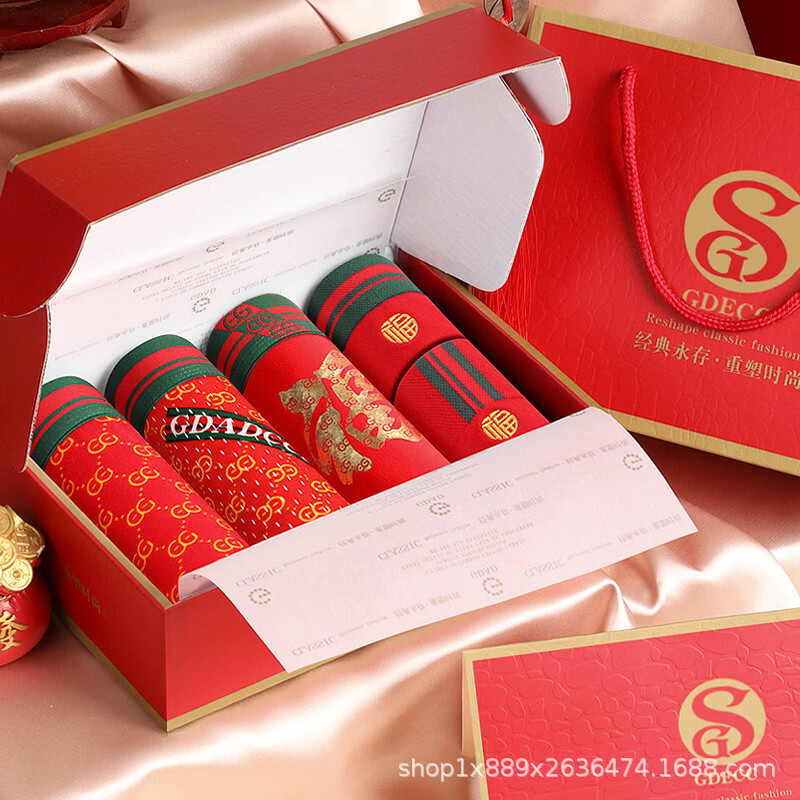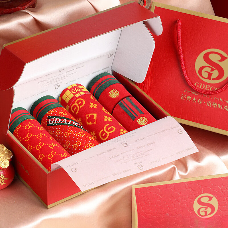 GDAD男士内裤印花本命红色送礼礼盒个性款男士平角裤 AB7011【755+721+701+2双袜子】3 L (90-115斤)