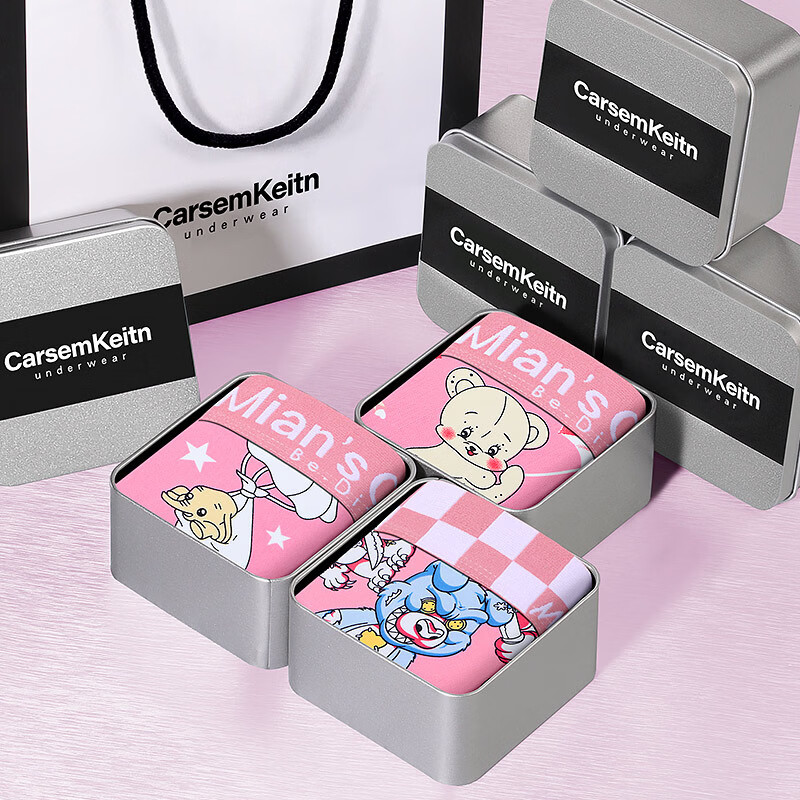 CARSEMKEITN男士冰丝卡通透气CK印花内裤粉色猛男裤衩3条马口礼盒装 CT210【跳伞+雨伞熊+布偶】装礼盒装 3条 2XL (135-155)