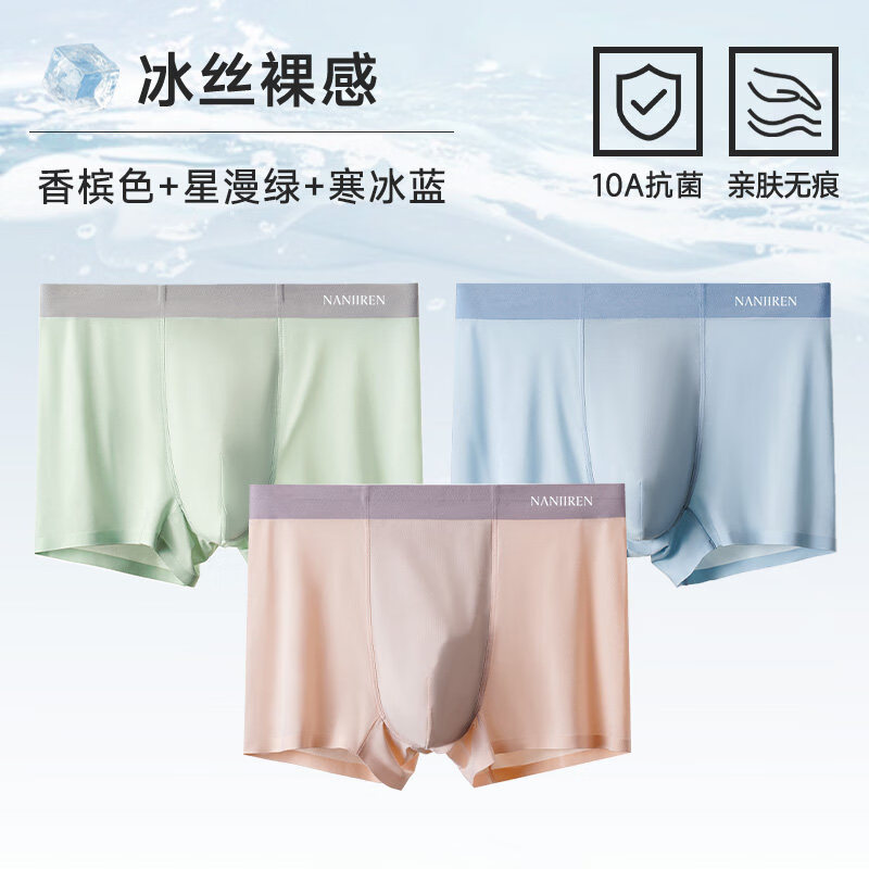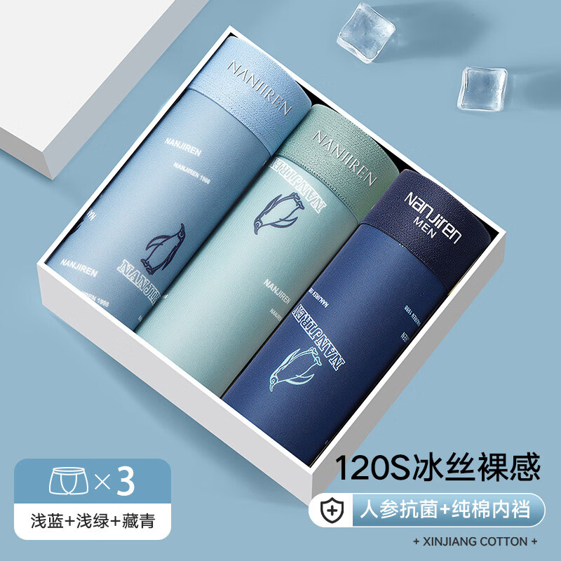 南极人男士内裤冰丝男款男生四角短裤头四角裤夏薄款青年2025新款 轻奢品质+独立包装浅蓝+浅绿+藏青 3条 2XL _体重140-160斤
