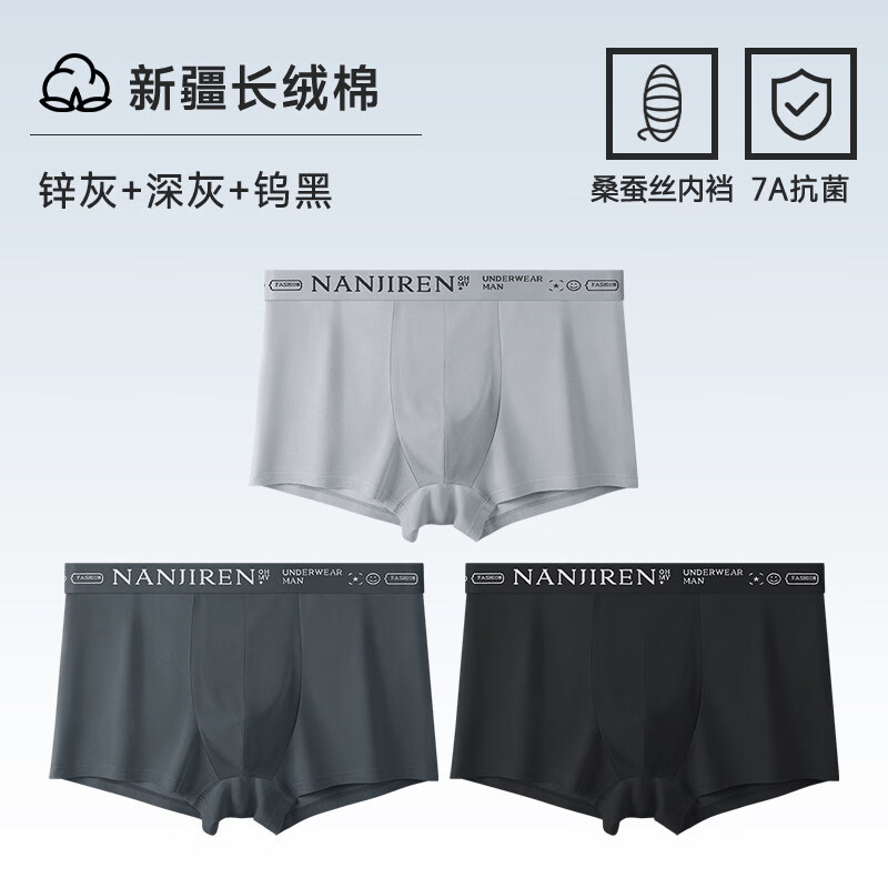 南极人男士内裤棉男款男生平角四角裤头短裤夏薄款男式2025新款 80S棉_桑24601-锌灰+深灰+钨黑 3条 2XL _体重150-170斤