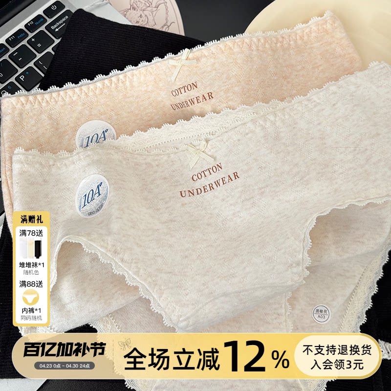 棉文化纯棉内裤女100%全棉新疆棉抗菌可爱蝴蝶结薄低腰三角裤透气