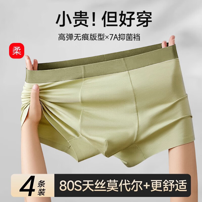 莫代尔高档男士内裤男生四角裤休闲大码新款无痕凉感平角男款短裤衩 青芒黄+鹤红灰+绿松石 3条 2XL