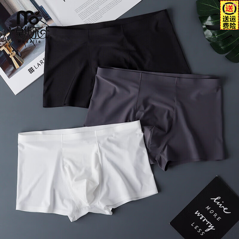 莫代尔内裤男冰丝薄款无痕四角裤商务透气男士内裤夏季舒适四角裤衩裤头 黑色+灰色+白色 3条 2XL 适合【130至150斤】
