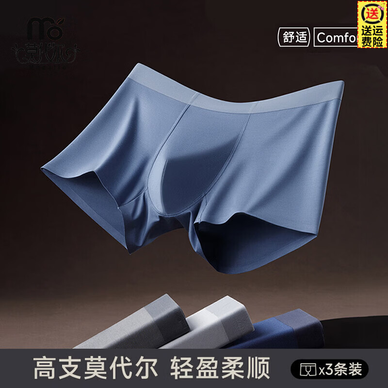 猫人莫代尔32S男士内裤透气平角裤衩3条装 湖蓝+灰蓝+宝蓝【3条装】 2XL 【120-135】