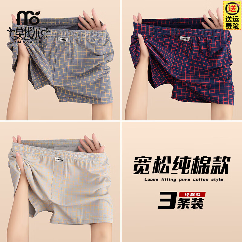 莫代尔纯棉宽松男士内裤男款透气阿罗裤男生格子休闲短裤男款居家睡裤 【纯棉透气】灰色+宝蓝+浅灰 3条 2XL 推荐体重140-160斤