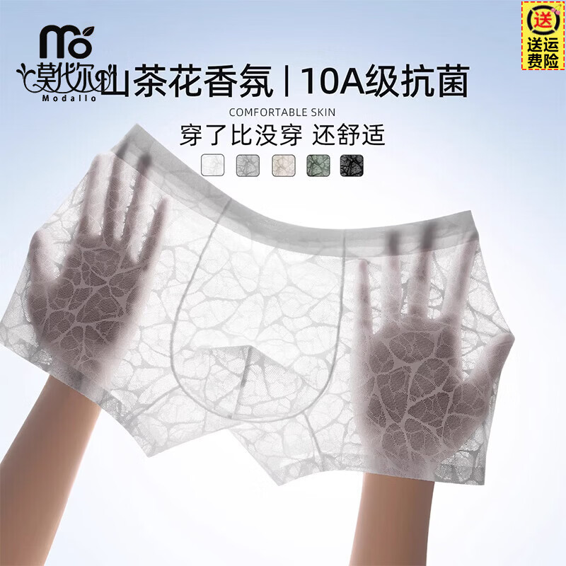 莫代尔冰丝内裤男士平角短裤男生款透气性感镂空无痕2026新款 冰川白+沙丘杏+暗夜黑【性感镂空蕾丝/10A级抑菌】 3条 2XL 【130-150斤】