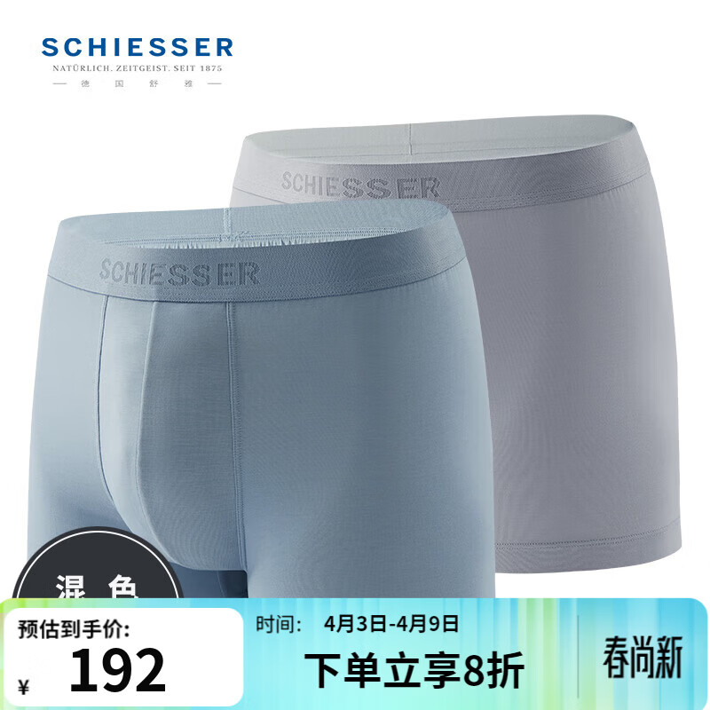 舒雅(Schiesser)男士内裤80S莫代尔桑蚕丝3A抑菌平角裤【混色2条装】E5/19351T 灰蓝+灰色 2条 L