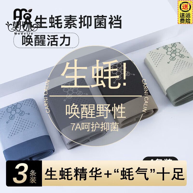 莫代尔唤醒野兽男士内裤男生蚝素透气四角裤宽松运动男生平角裤头 暮灰+余白+竹月蓝 3条 2XL 【高170-180,重130-150斤】