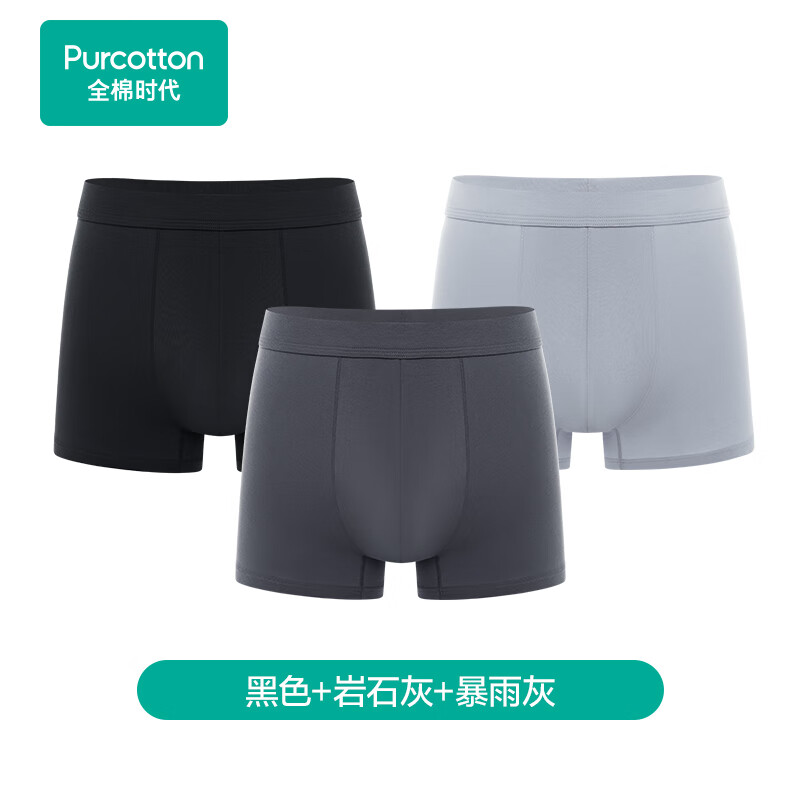 全棉时代男士内裤针织纯棉四角内裤透气亲肤薄款平角裤 2/3条装 黑色+岩石灰+暴雨灰 (亲肤) 3条 M (170)
