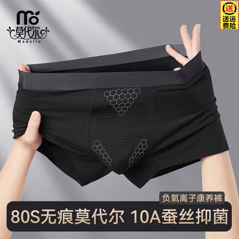 莫代尔男士内裤冰丝2026新款四角裤夏季薄款透气男款平角裤大码短裤 黑色+深灰+银灰【120支夏季凉感冰丝】 3条 2XL 【适合130-150斤】