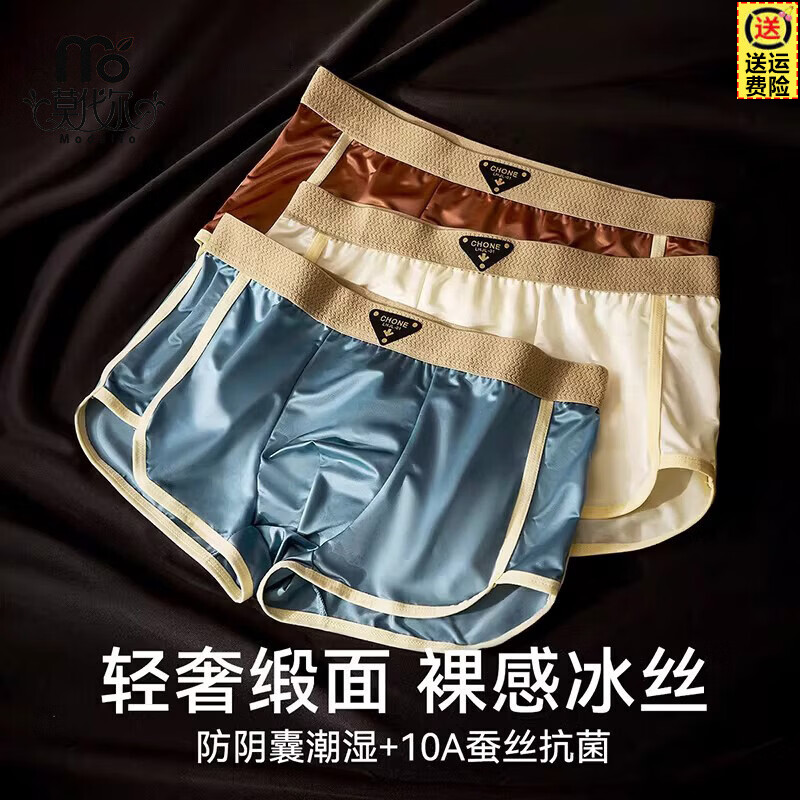 莫代尔轻奢缎面男士内裤冰丝阿罗裤10A级抑菌裆裸感男生四角平角短裤 梦璃棕+浣纱白+月夜蓝 3条 2XL (适合体重130-150斤)