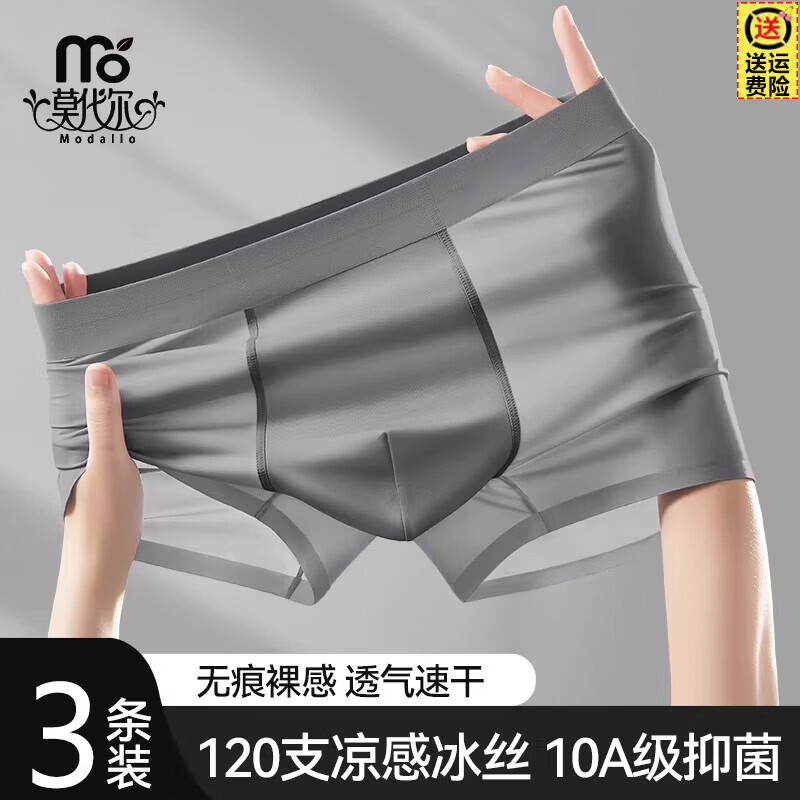 莫代尔男士内裤冰丝夏季速干冰爽透气超轻薄款男生平角短裤男式四角大码 浅灰卡+雾蓝+蛋皮黄 3条 2XL 130-150斤