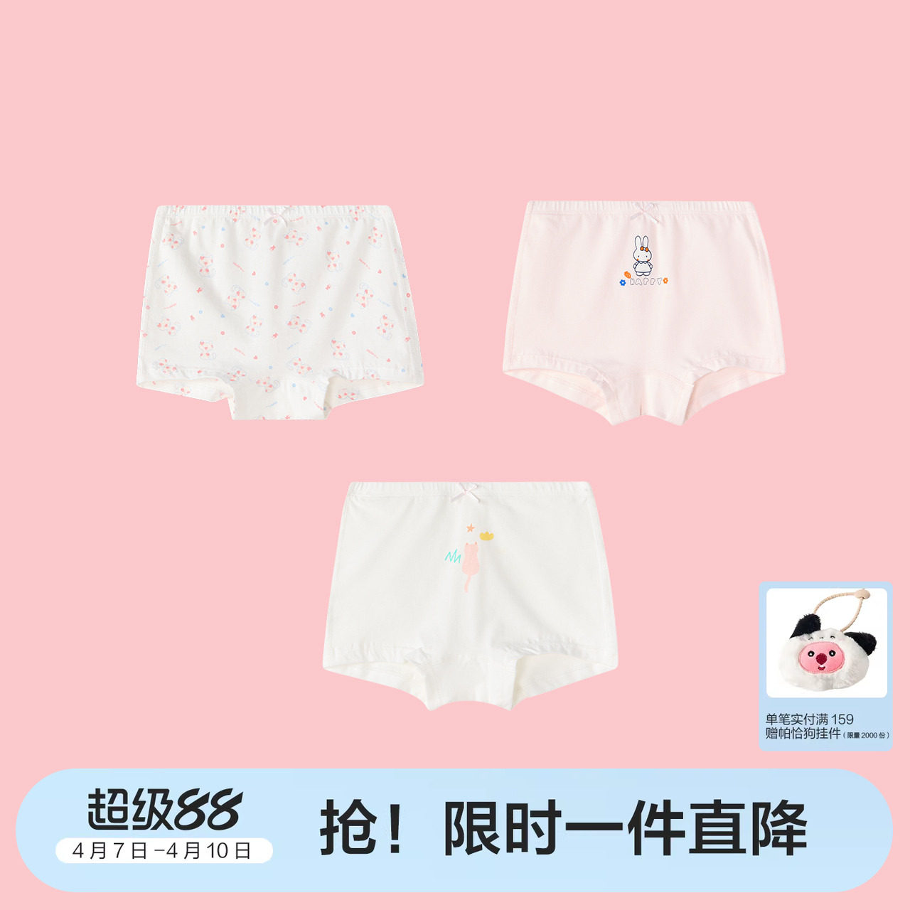 【3条装】笛莎女童内裤大童女宝宝四角平角短裤儿童女孩裤头裤衩