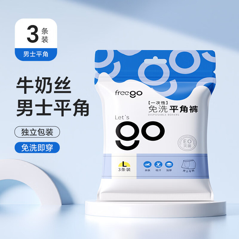Freego牛奶丝免洗内裤女款产妇月子旅行用品免洗日抛独立包装 【EO】3条男士平角白色--牛奶丝 2XL