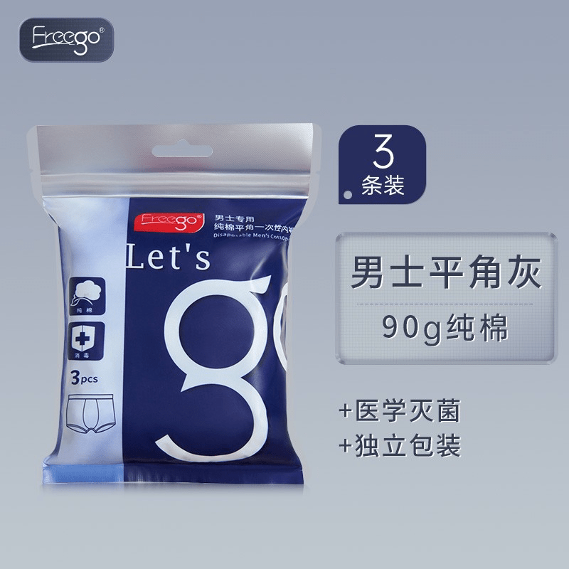 Freego免洗内裤男女旅游短裤旅行产妇纯棉无菌成人免洗安全裤 3条男士平角灰色 男款2XL【建议体重140-160斤】