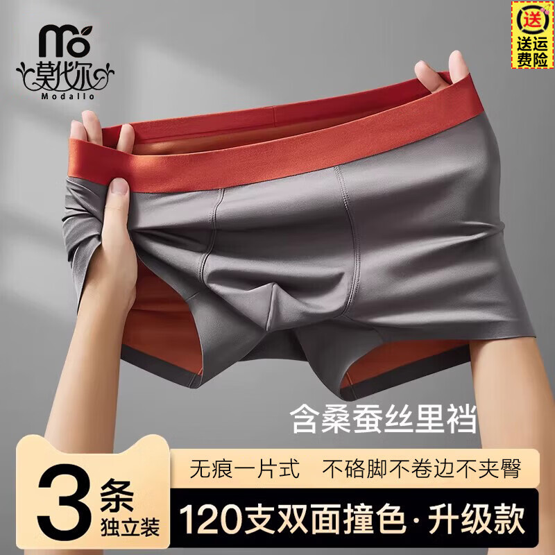 莫代尔男士内裤男生冰丝莫代尔无痕透气夏季薄款四角平角短裤头男款 熔岩炭橘+森系黄绿+日出蓝粉 【升级120支撞色冰丝】 3条 2XL 【适合140-160斤】