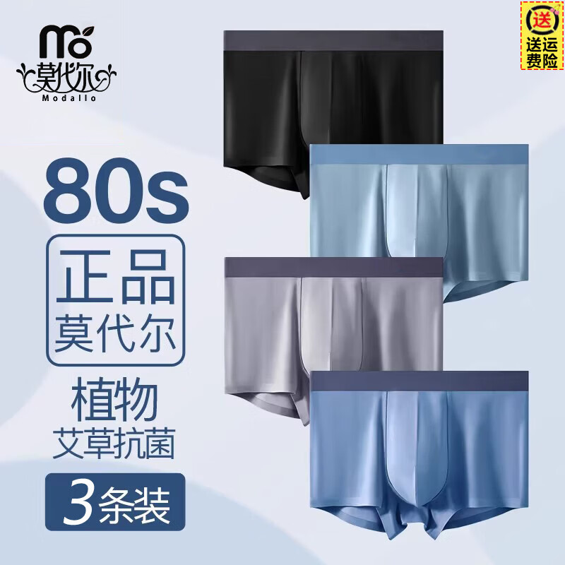 猫人男士内裤3条无痕莫代尔中腰四角平角7A抑菌内裆裤衩大码短裤 黑色+浅灰+浅蓝 3条 2XL (130-150斤)