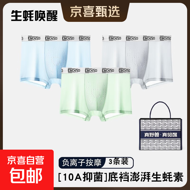 GDECC内裤男士冰丝内裤10A抑菌生蚝按摩内裆透气凉感舒适平角短裤 海狮蓝+睿鹰绿+风龙灰 3条 2XL 【推荐135-155斤】