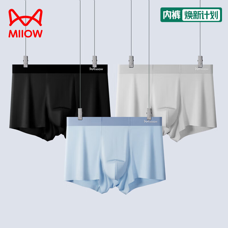 MiiOW/猫人男士冰丝内裤无痕裤衩网孔透气空调裤夏季冰凉内裤速干