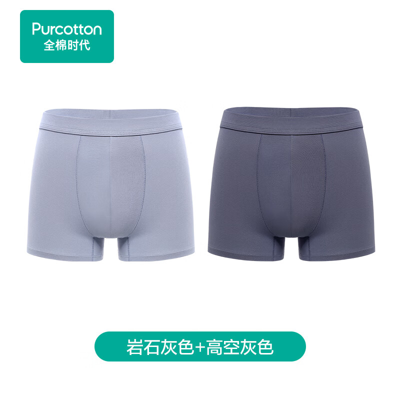 全棉时代男士内裤针织纯棉四角内裤透气亲肤薄款平角裤 2/3条装 (平角)岩石灰色+高空灰色 2条 XL (180)