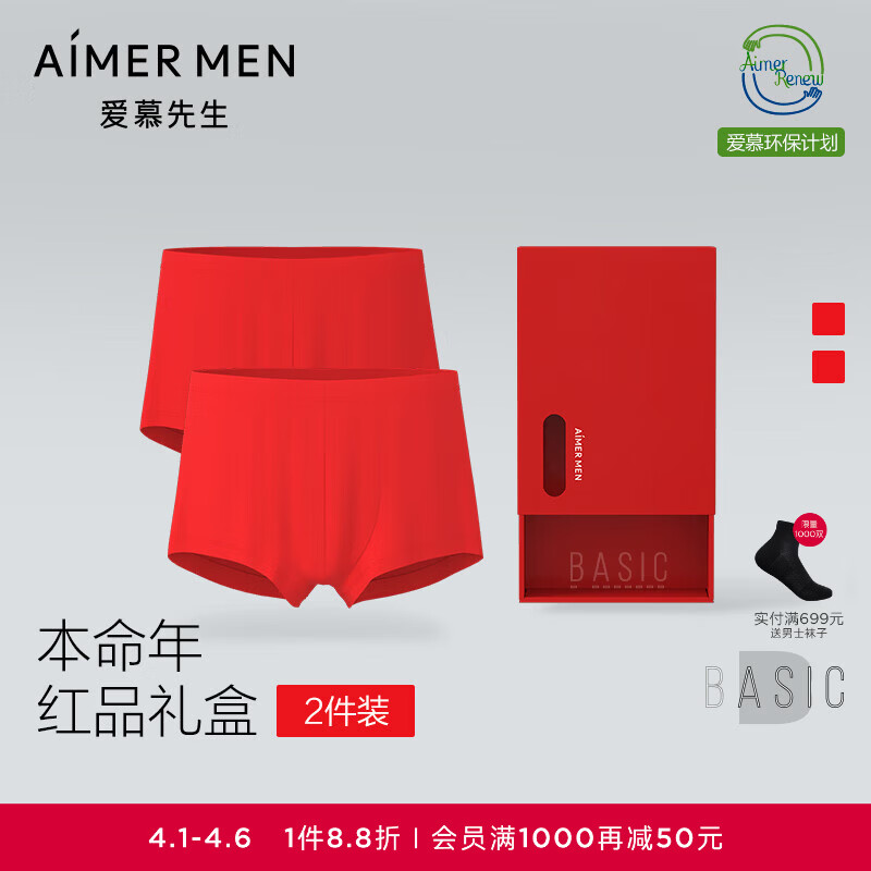 爱慕先生(AIMER MEN)【红品礼盒内裤2件装】好事成双红品内裤两件包男士内裤NS23C962 红色700 2条 3XL (185)