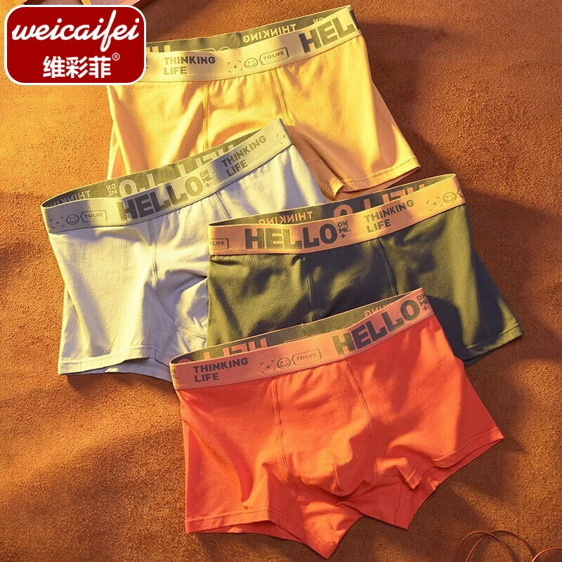 维彩菲 潮流男士内裤高弹透气平角裤时尚亲肤四角裤舒适青年男中腰内裤 【颜色随机】 搭配装 2条 3XL (140-165斤)