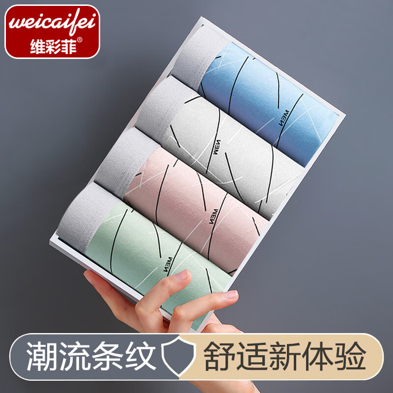 维彩菲潮流条纹男士内裤中腰高弹透气平角裤男青年四角裤舒适男生内裤 【颜色随机】 搭配装 2条 3XL (140-165斤左右)