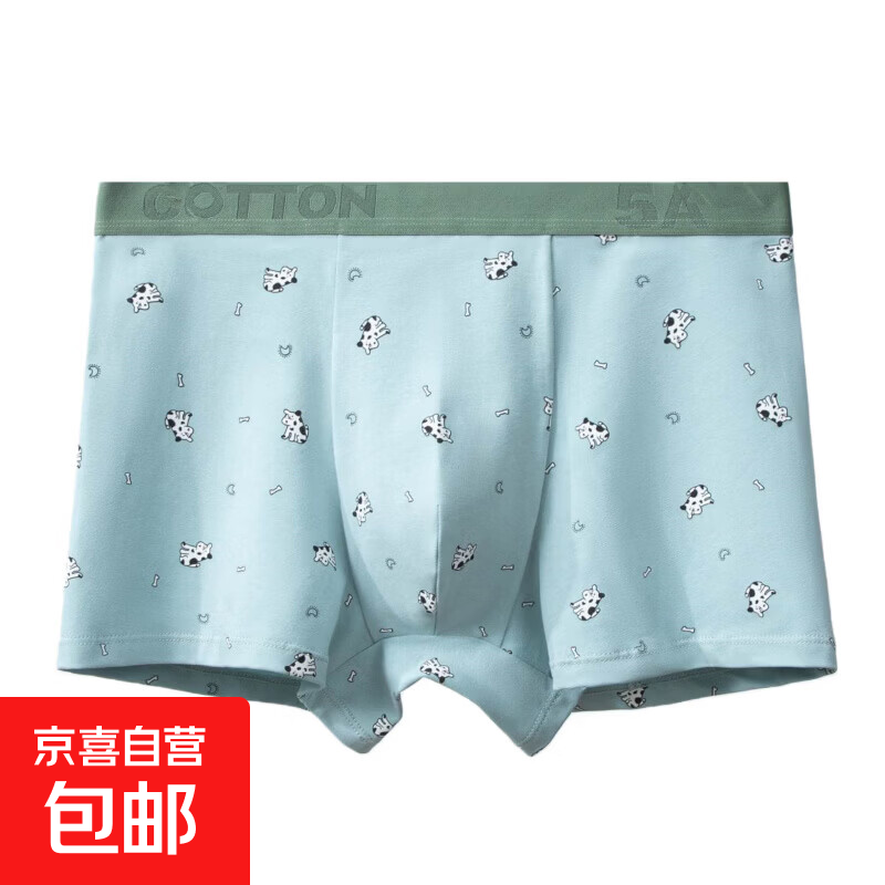 男士内裤纯棉男生可爱通5新送男友礼物舒适透气四角裤全棉 浅蓝奶牛(2件) 3XL