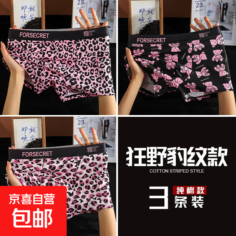 狂野男士内裤男斑纹气平角裤个性潮流印花短裤 装【粉豹+小熊+花豹】 3条 2XL 【140-160斤】