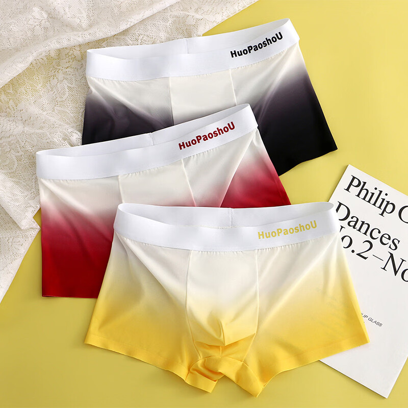 渐变冰丝男士内裤薄款男生平角裤亲肤透气四角裤中腰高弹短裤头潮 [3条]绿色+深灰+黑色 均码 2XL[140+160斤]