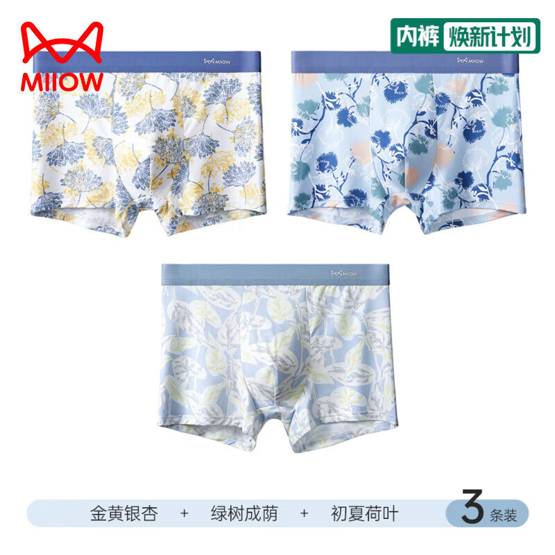 猫人莫代尔内裤男冰丝平角裤抗菌裆夏季薄款男生青少年四角短裤头大码 金银杏+绿树+荷叶 3条 2XL 【建议130-150斤】