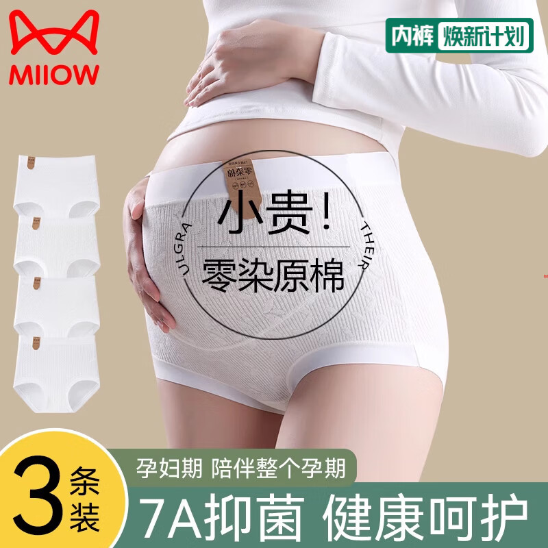 猫人内裤女纯棉大码抗菌高腰托腹怀孕专用早中晚期短裤头新款 花朵棉+菱形棉+华夫格棉 3条 2XL 【建议体重155-180斤】