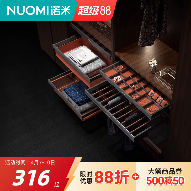 NUOMI诺米柜内裤架伸缩衣柜皮革衣帽间家用静音阻尼饰物收纳拉篮