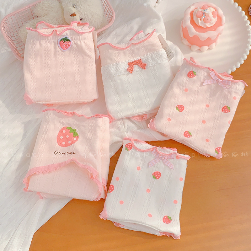 草莓啵啵~可爱粉色纯棉内裤女加长裆学生甜美少女三角裤A类抗菌裆