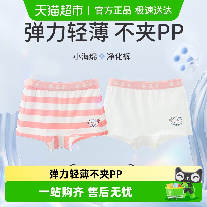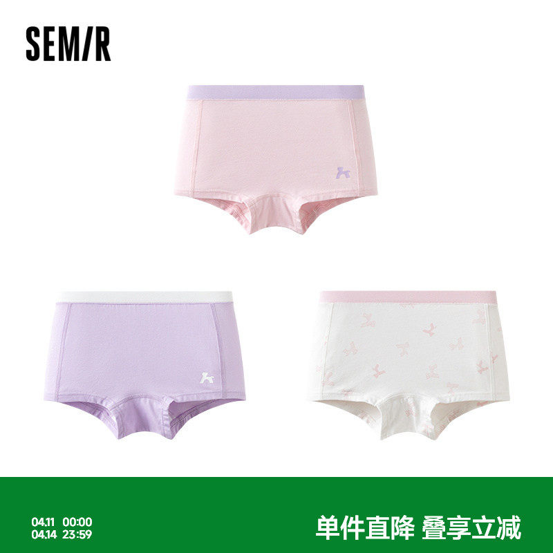 森马儿童内裤2024年新款抑菌四角裤柔软弹力平角裤女童短裤3条装