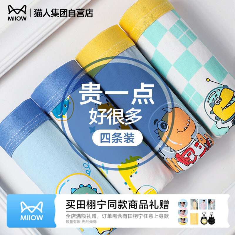 【明星推荐】猫人4条装儿童男童纯棉抑菌透气柔软裤四角裤内裤