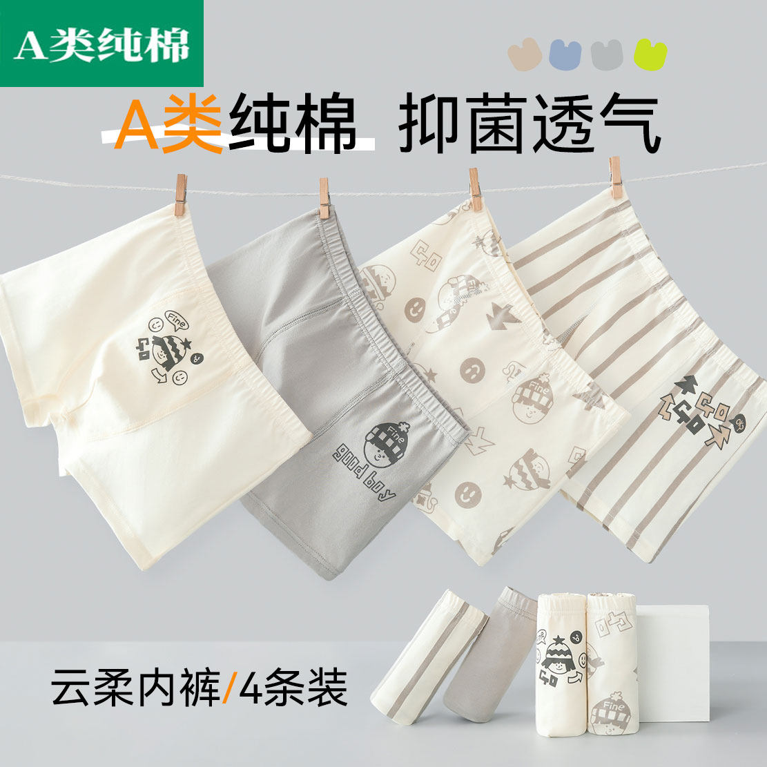 全棉母婴纯棉男童内裤全棉宝宝四角裤儿童纯棉a类中大童男孩平角
