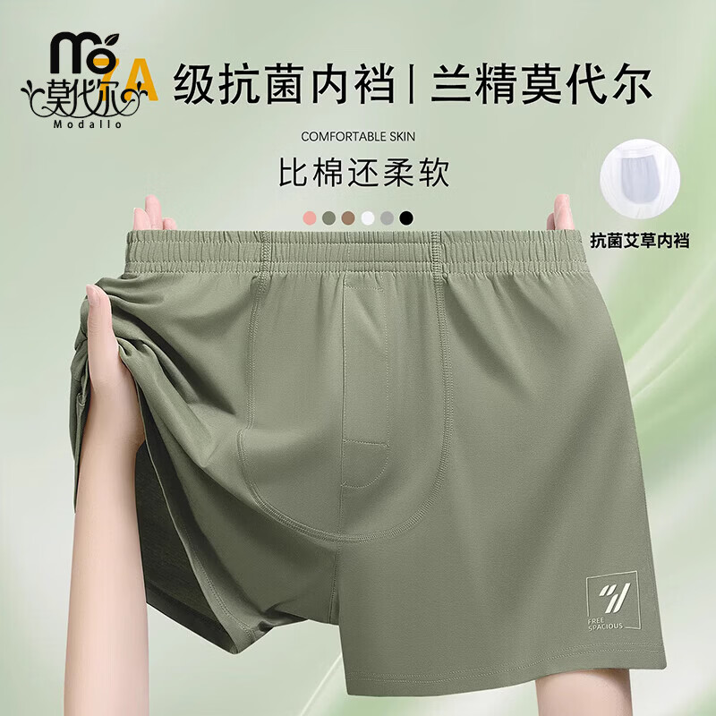 莫代尔阿罗裤男士内裤大码宽松版2026新款莫代尔棉抗菌内档哈罗裤平角裤 黑色+青绿+棕色 3条 2XL 140斤 - 160斤