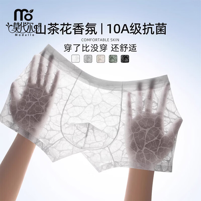 莫代尔冰丝内裤男士平角短裤男生款透气性感镂空无痕2026新款 冰川白+沙丘杏+暗夜黑【性感镂空蕾丝/10A级抑菌】 3条 2XL 【130-150斤】