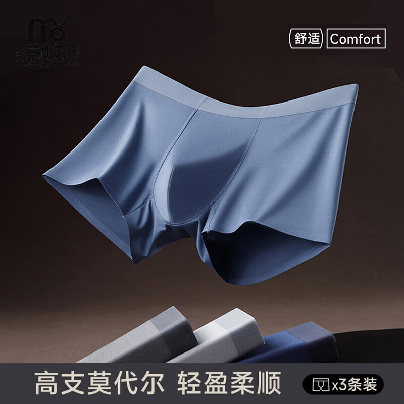 猫人莫代尔32S男士内裤透气平角裤衩3条装 黑色+灰蓝+宝蓝【3条装】 2XL 【120-135】