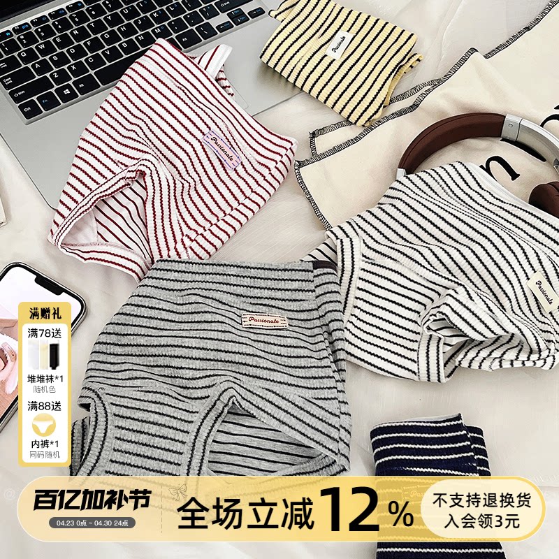 抽屉旧日记~美式复古条纹运动纯棉女生四角内裤10A抑菌平角加长裆