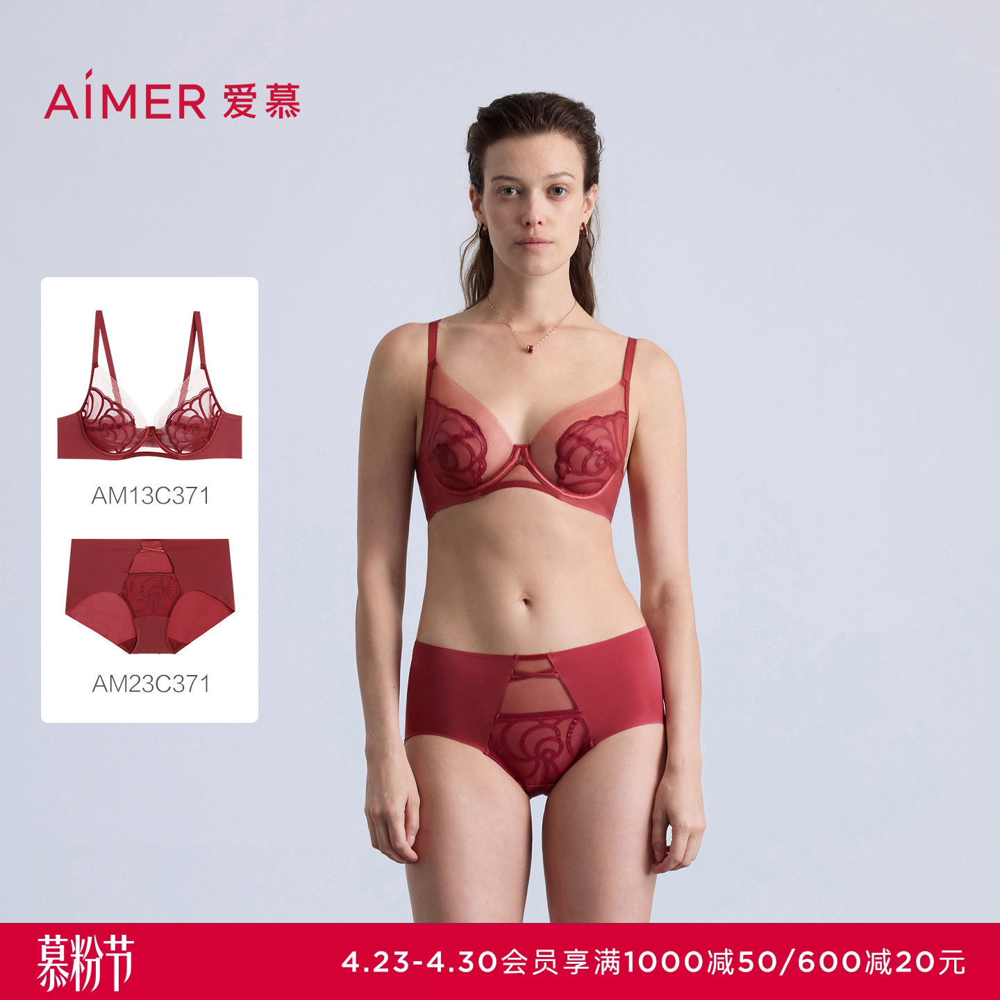 爱慕瑰丽内衣女性感轻薄杯本命年红品大胸显小大罩杯文胸内裤套装