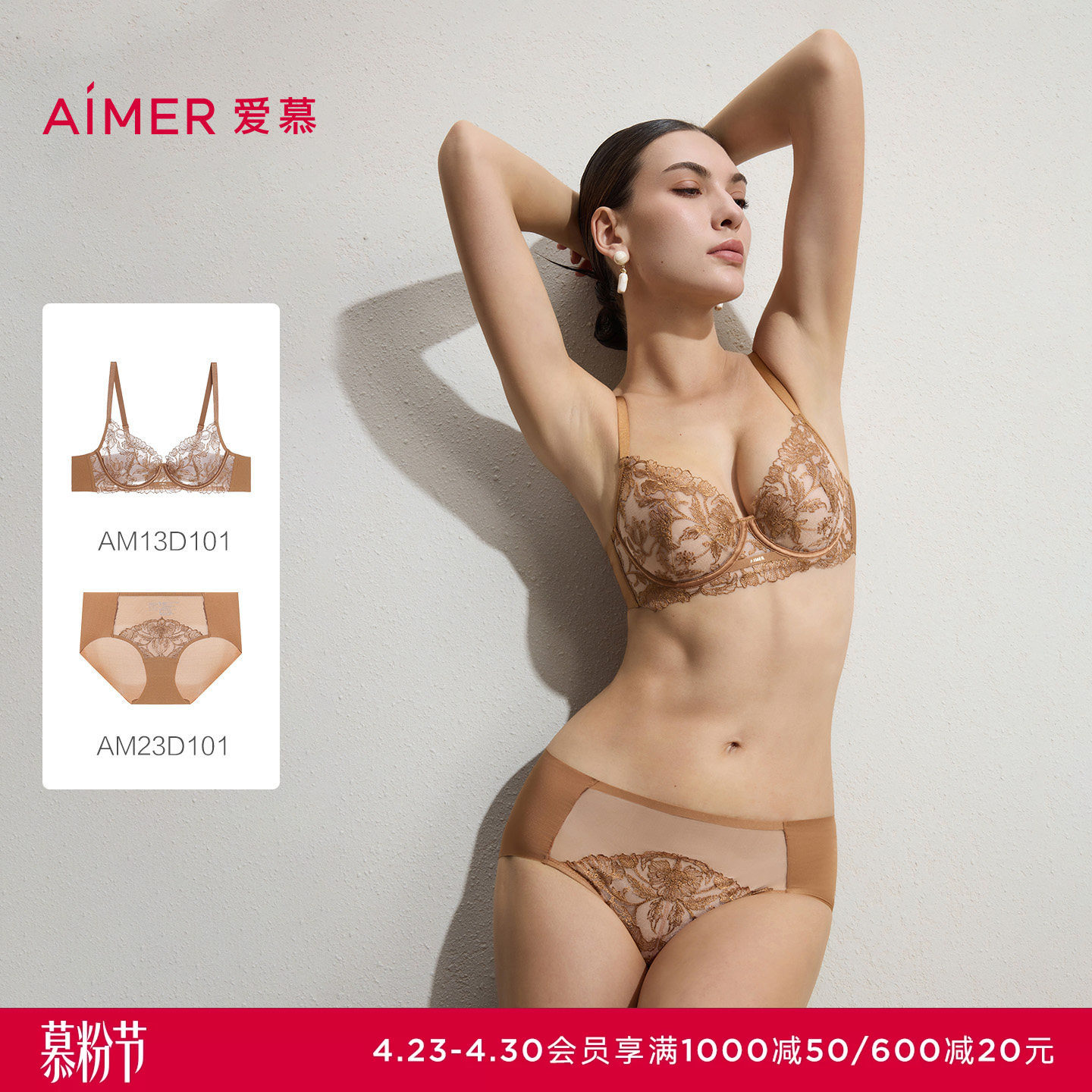 爱慕礼服贴贴内衣女3/4薄杯大胸显小性感蕾丝文胸内裤套装