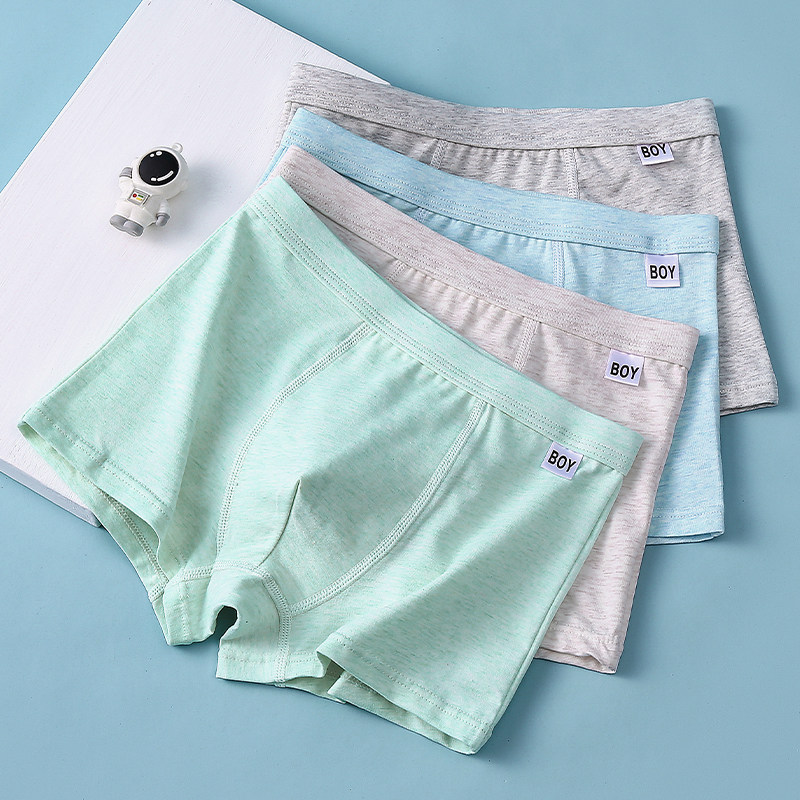 儿童内裤男童平角裤纯棉中大童彩砂棉男孩青少年四角短裤纯色男款