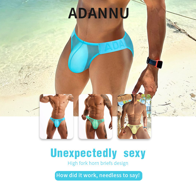 男士高开叉内裤透明网纱面料单层透气轻薄防摩擦运动短裤头男款潮