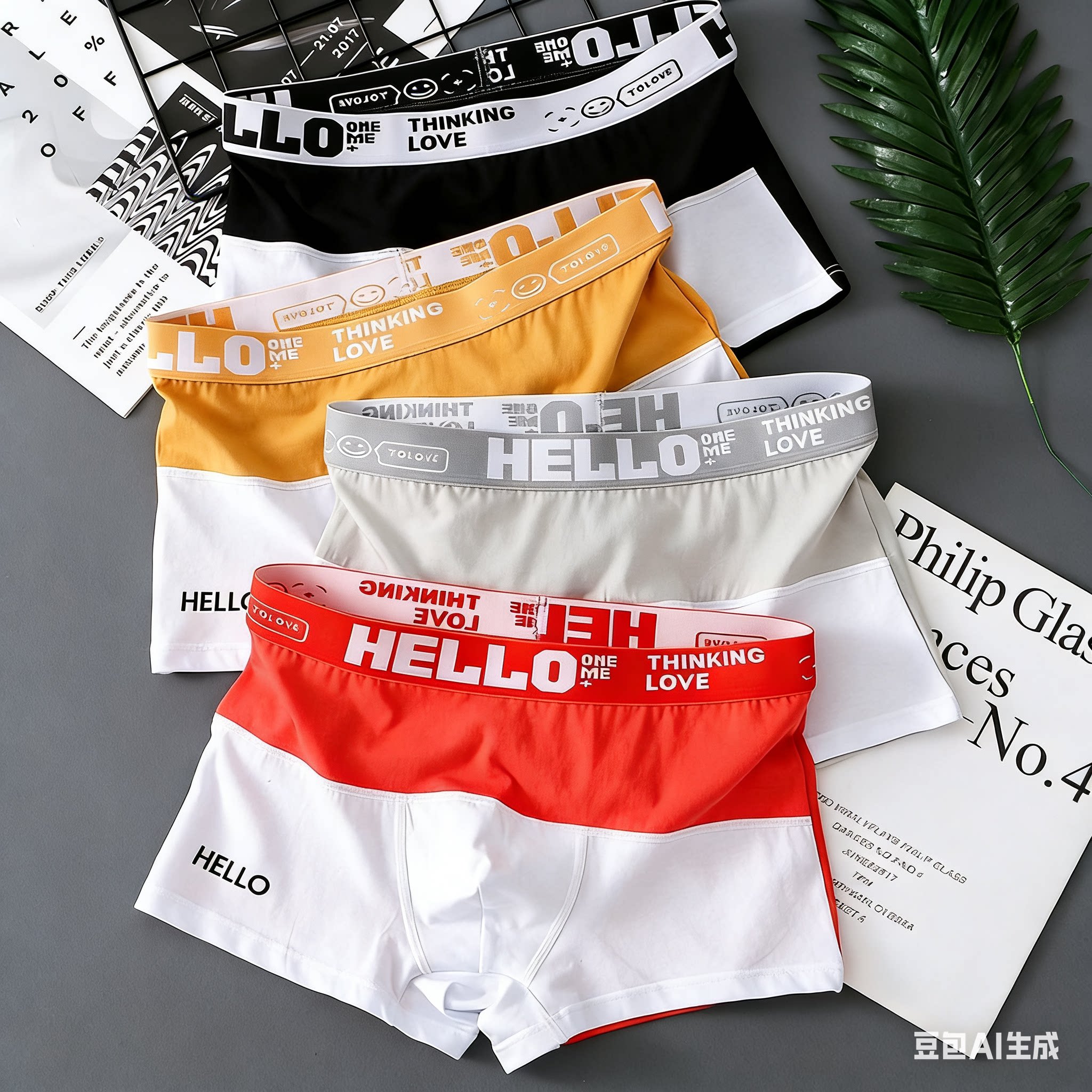 春夏男士中腰内裤男四角裤青少年透气平角裤潮流个性裤衩男生裤头