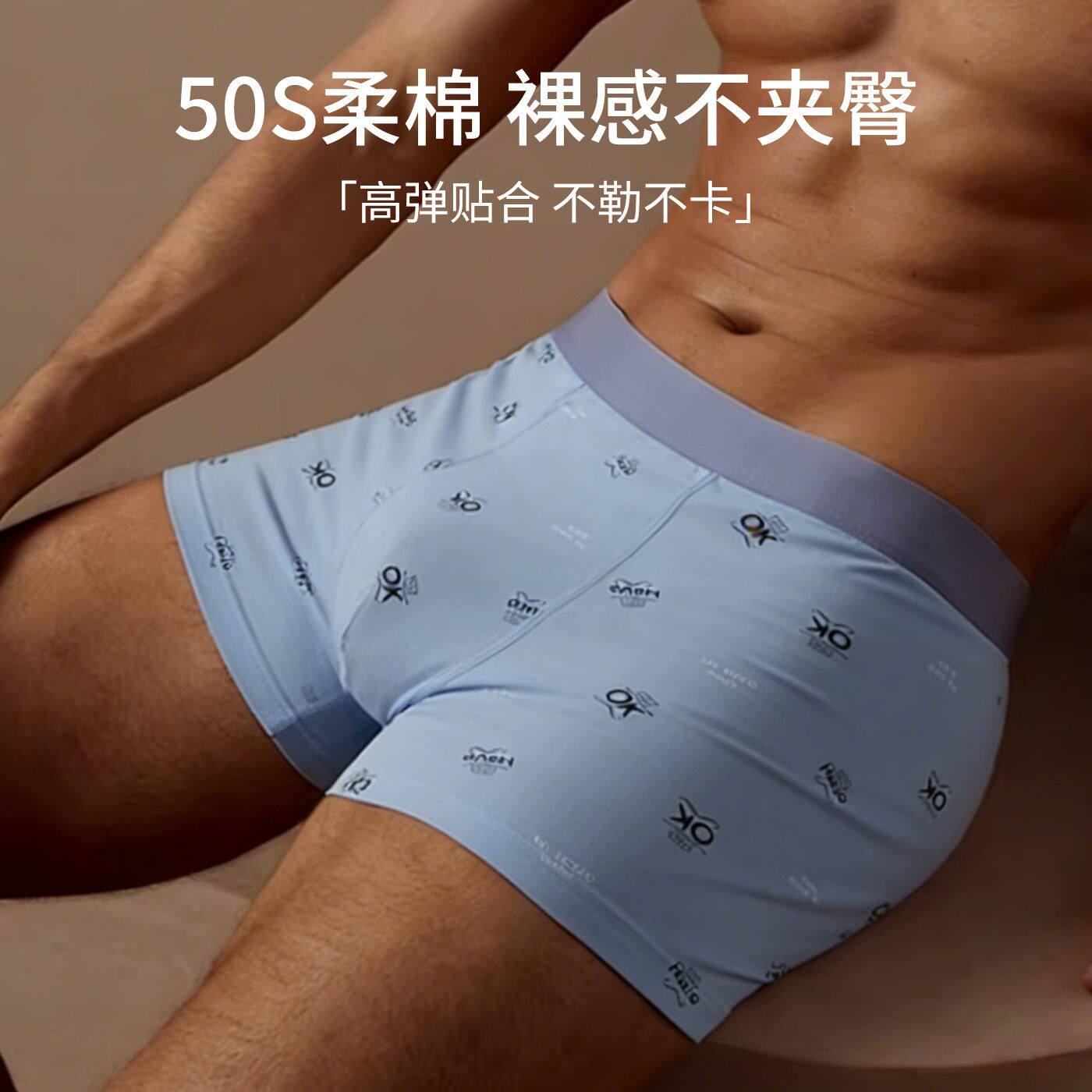 纯棉男士平角内裤透气舒适无痕抑菌裆四角裤中腰印花男士平角短裤