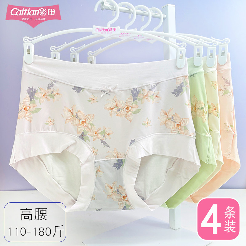 彩田32706高腰女士内裤包臀大码印花薄款冰丝莫代尔石墨烯抗菌裆
