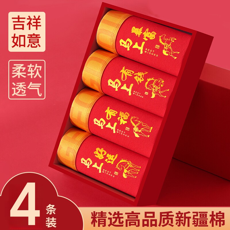 红内裤男士内裤本命年冰丝平角大红色结婚礼物四角短裤头过年喜庆